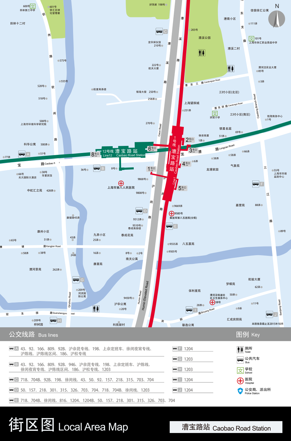 受该站附近地块开发影响,12号线漕宝路站开通初期将启用9、10号出入口,而靠近上海市第八医院的7号出入口暂无法开通,预计2016年底可开启使用。