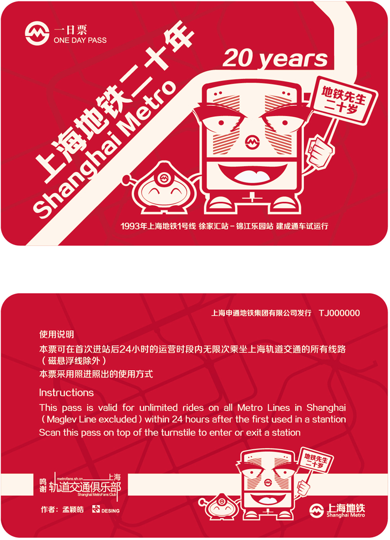票卡作品三等奖:《20年的朋友—上海地铁》 作者:许骏