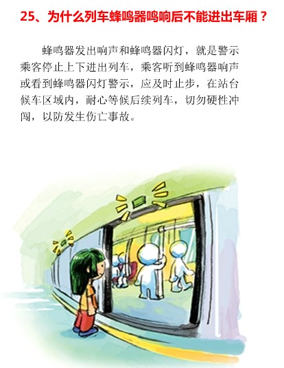 蜂鸣器发出响声和蜂鸣器闪灯,就是警示乘客停止上下进出列车,乘客听到蜂鸣器响声或看到蜂鸣器闪灯警示,应及时止步,在站台候车区域内耐心等待后续列车,切勿硬性冲闯,以防发生伤亡事故。